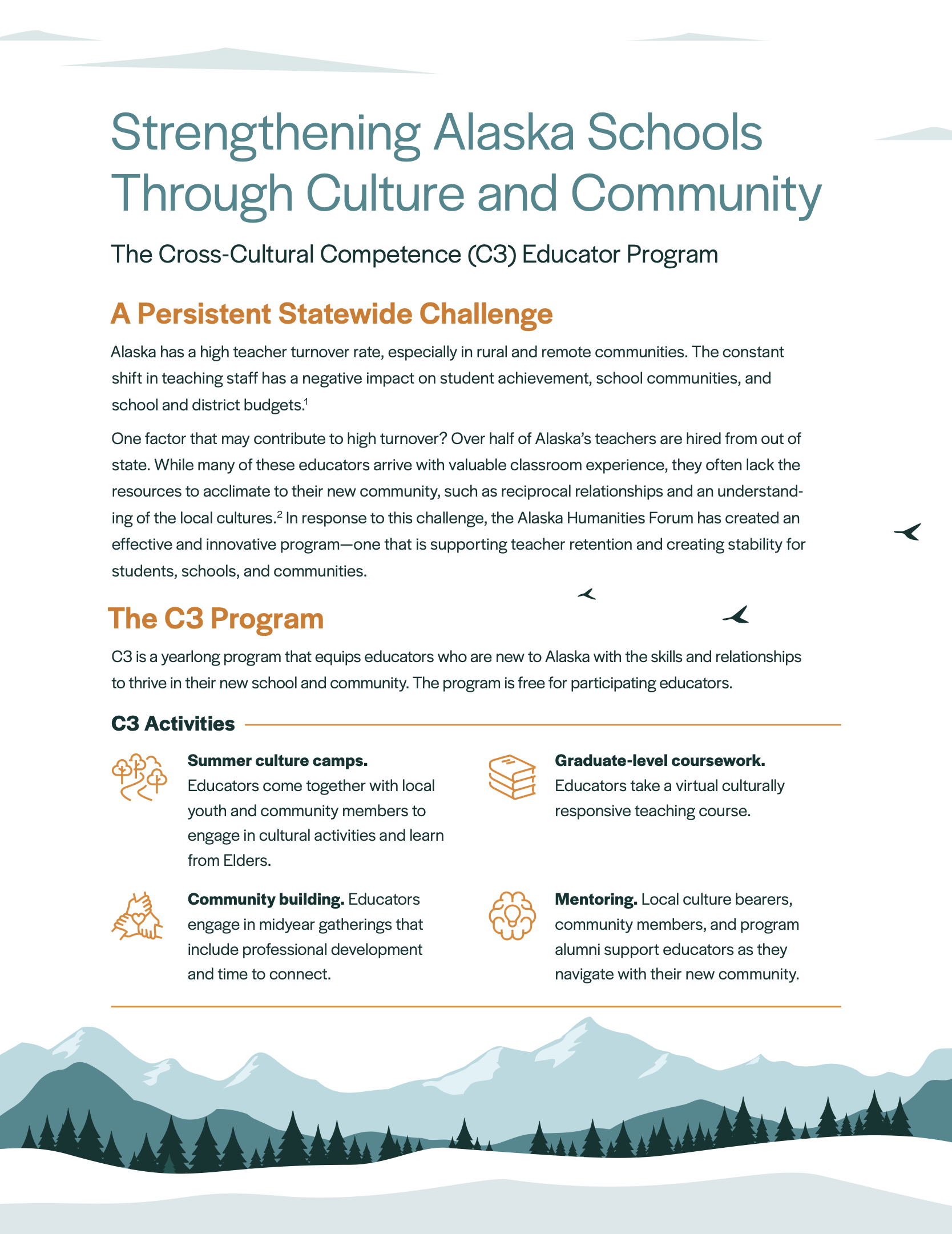 Explore evidence of what’s working. Learn how the C3: Cross-Cultural Competence (C3) program is addressing Alaska’s teacher retention challenges through culturally grounded preparation and support.