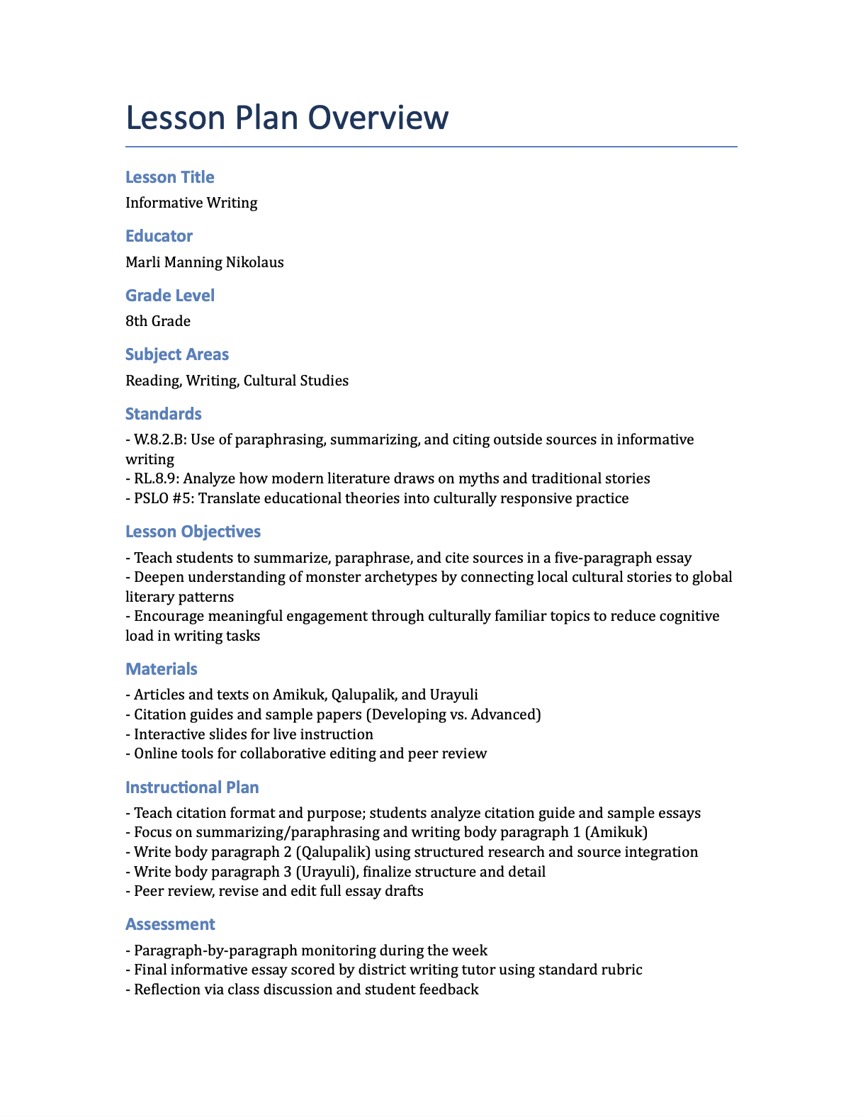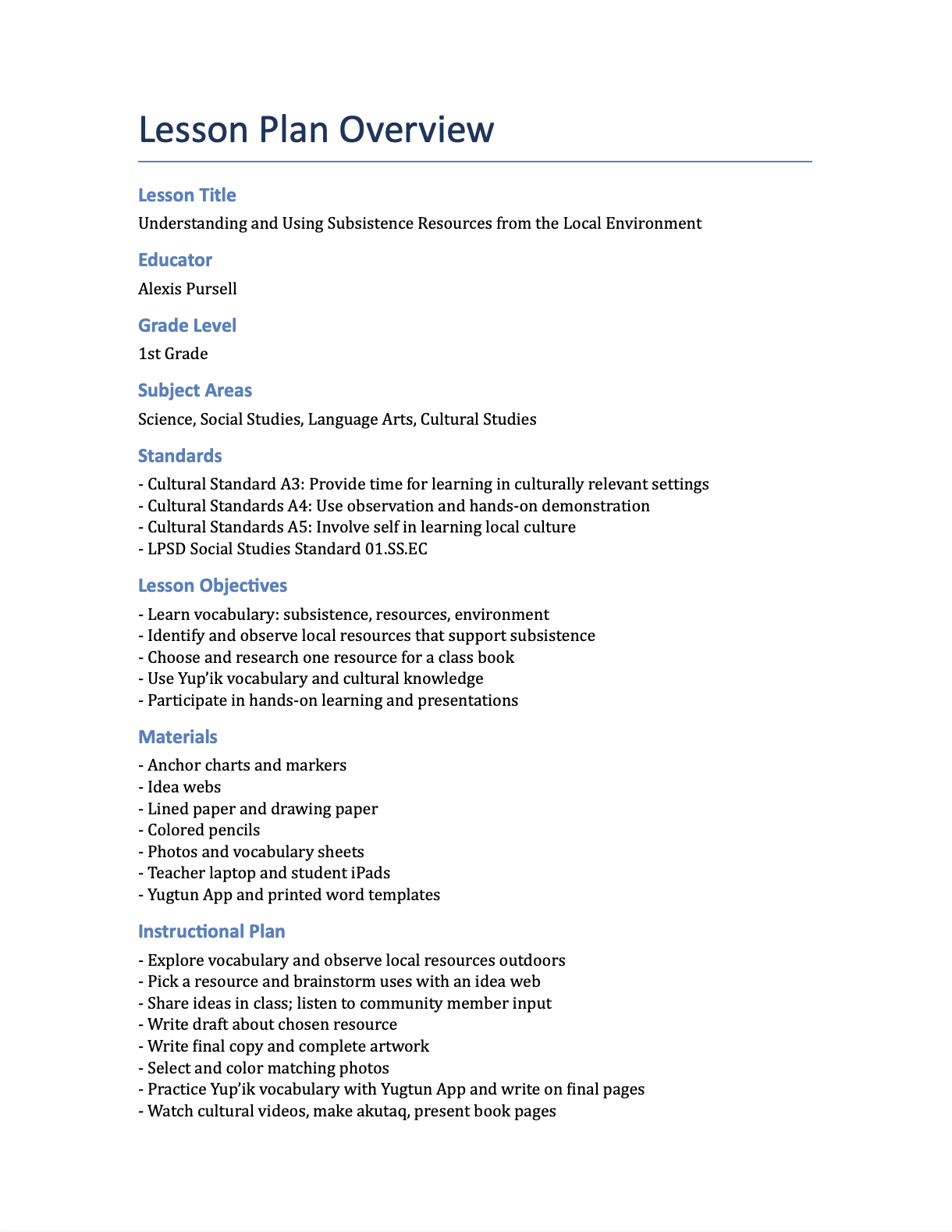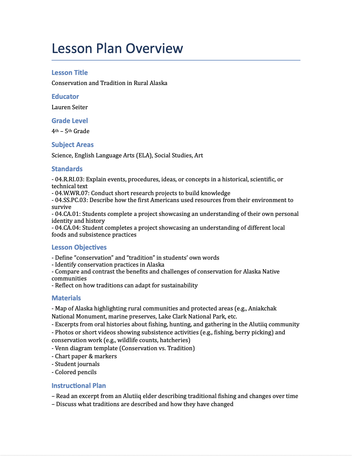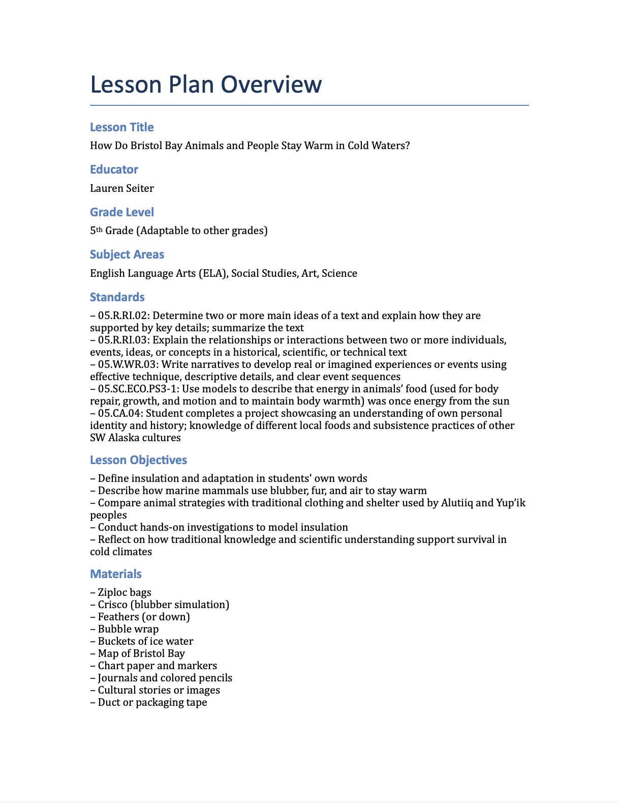 This collection was built for educators looking to make cultural relevance part of everyday teaching. These ready-to-use lesson plans center on the traditions, languages, and lived experiences of the people and communities in Bristol Bay.